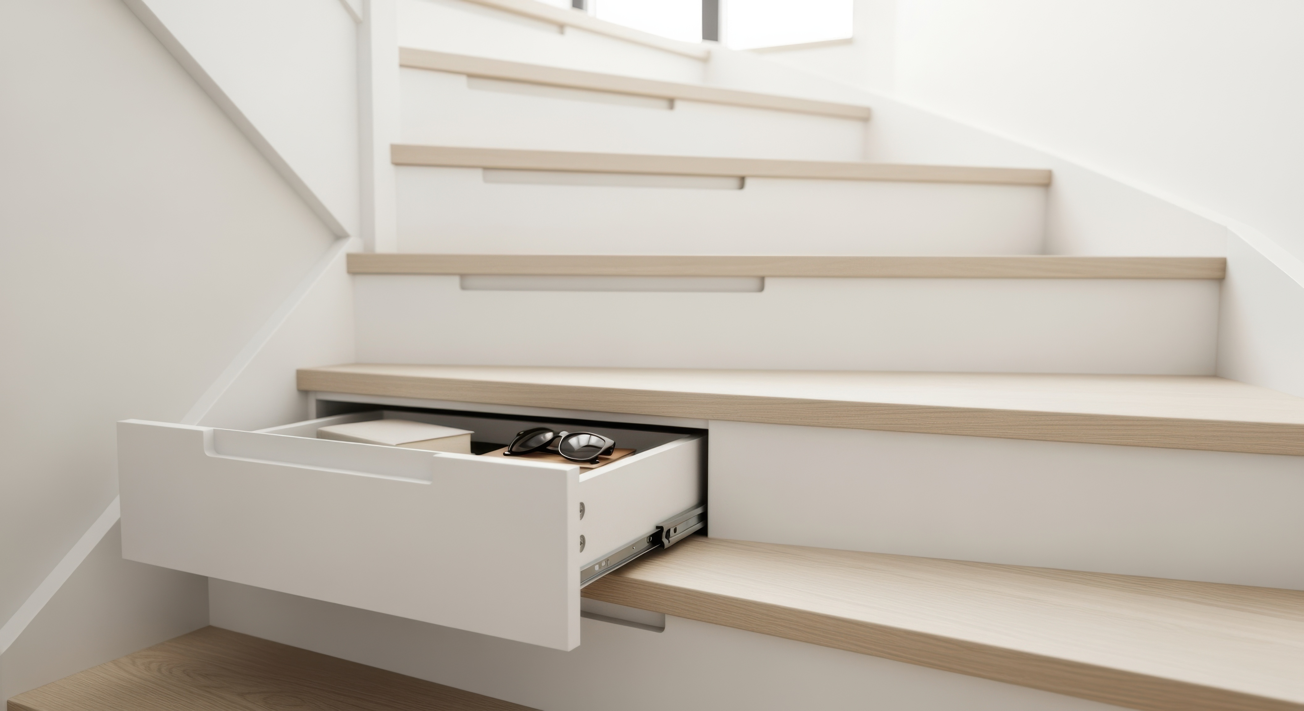 - Staircase Drawers: Turn each drawer into a secret pop-out drawer for storing winter boots, gloves and scarves and other seasonal items.
